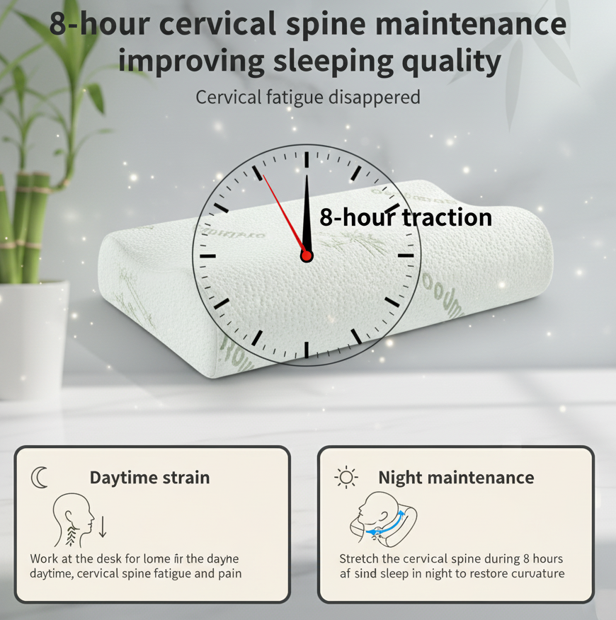 Made with premium memory foam and a breathable bamboo fiber cover, it’s perfect for anyone struggling with neck stiffness, back pain, or restless sleep.